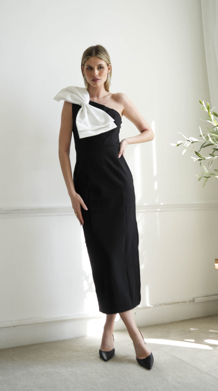 Make a bold statement with this stunning  maxi dress, featuring a dramatic one-shoulder design, embellished with a captivating oversized bow and a side slit for added glamour. Carefully crafted from Ponte fabric which sculpts the silhouette, in a flattering pencil fit. Pair with your favourite heels and you’re ready for any special event.